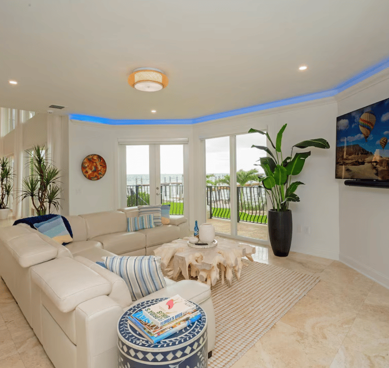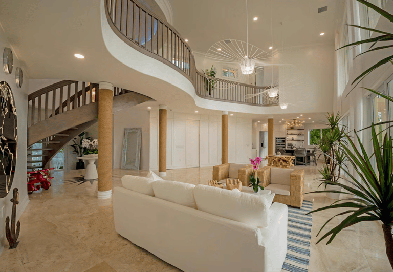 This oceanfront retreat in Marathon, Florida, embodies relaxed coastal luxury. The home is designed for effortless indoor-outdoor living, featuring airy open spaces, expansive windows, and serene ocean views from nearly every room. The interiors balance comfort and sophistication with light tones, natural textures, and timeless coastal finishes.